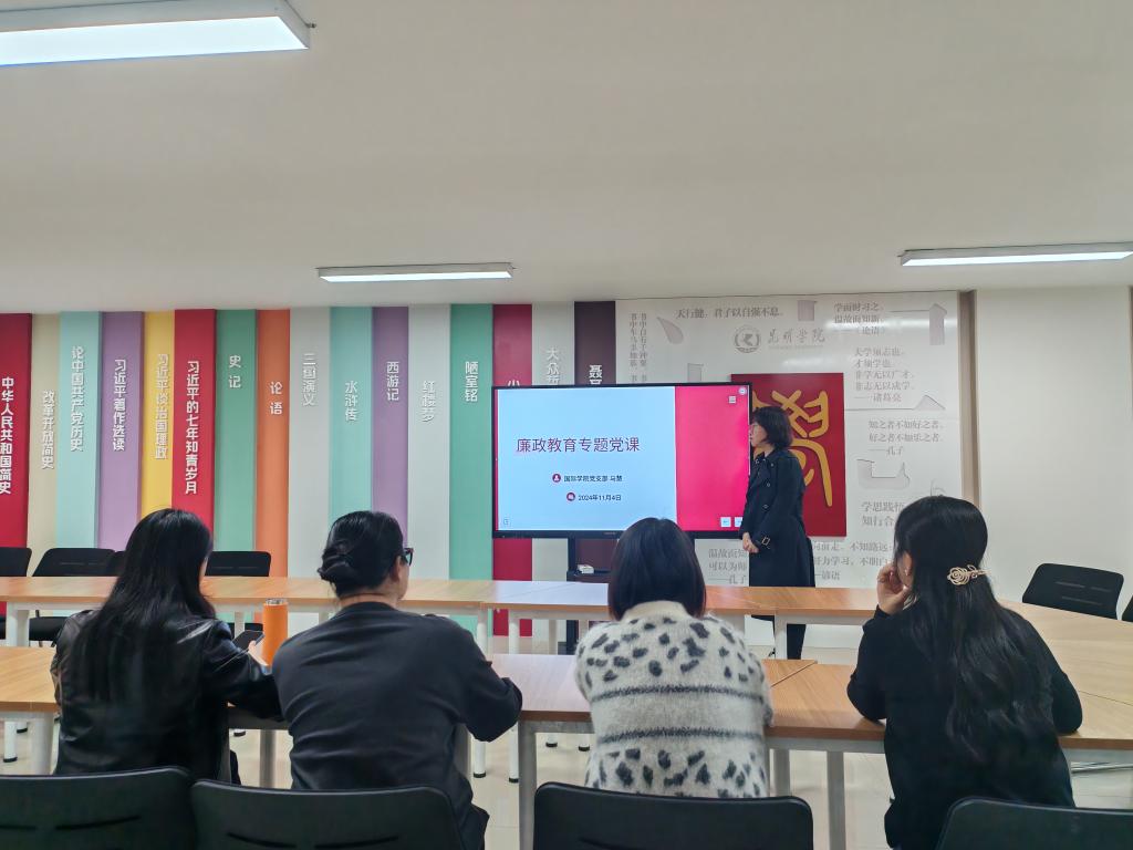 国际公司党支部结合公司工作实际,组织全体党员进行了宣传动员,精心组织、制定了本年度廉政主题党日系列活动计划,包括党支部书记马慧同志与党员教师开展政治监督谈话,并为全体党员教师开展《廉政教育与足球赌注网站发展》的专题党课,纪检员孔昭妮同志开展《筑牢拒腐防变的思想防线》的廉政专题党课,董丹晔同志开展了以张桂梅同志为典范的廉洁故事宣讲等活动内容。